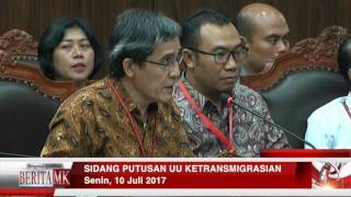 Mahkamah Konstitusi (MK) memutuskan menolak permohonan uji materiil Undang-Undang Nomor 15 Tahun 1997 tentang Ketransmigrasian juncto UU Nomor ...